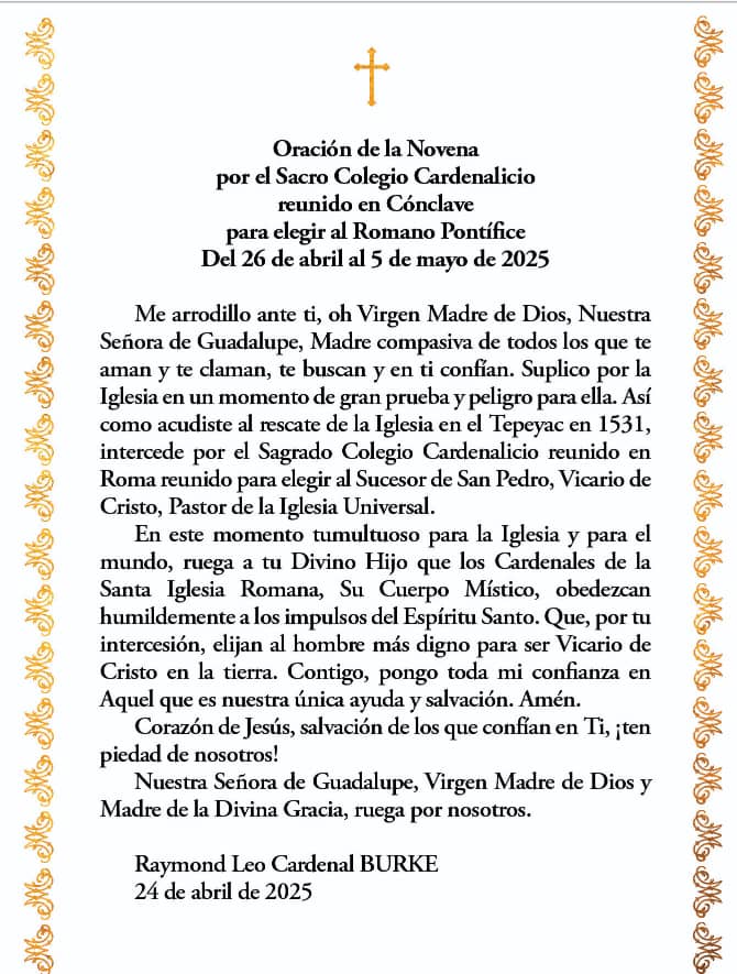 (InfoCatólica) El Cardenal Burke emitió un enigmático mensaje en sus redes sociales a todos aquellos que «rezan la novena por el Sacro Colegio Cardenalicio reunido en cónclave para elegir al Romano Pontífice».