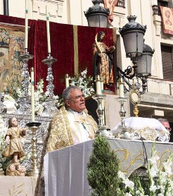 “Construyamos un mundo nuevo, respetando la ley de Dios: no matarás, haz un uso correcto de la sexualidad, no robarás”. A las 11,30 entraba de nuevo en la Catedral (antigua Mezquita) el Santísimo Sacramento, mientras la banda interpretaba el Himno de España.
