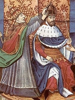 Carlos había recibido la unción regia cuando sólo contaba doce años. Acompañando a su padre en sus campañas militares aprendió el oficio de la guerra, en el que se mostraría como un gran adalid, hasta el punto que en torno a él se forjaría una leyenda, que dejó trazas en la famosa novela de caballería sobre los “Doce Pares de Francia”. Lo cierto es que habiendo alcanzado la edad adulta, ya se hallaba preparado para suceder a Pipino el Breve, el cual murió el 24 de septiembre de 768 en la abadía de Saint-Denis no sin antes haber dividido el reino franco entre él y su hermano menor Carlomán, siguiendo la costumbre germánica (que había contribuido a debilitar la monarquía merovingia).