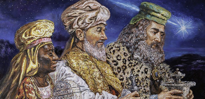 Los Magos de Oriente, guiados por la estrella, entraron en la casa; vieron al niño con María su madre y, postrándose, le adoraron; abrieron luego sus cofres y le ofrecieron dones de oro, incienso y mirra.