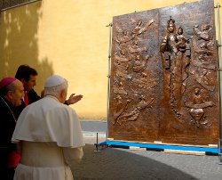 (Elobservatodo) La puerta de Chile es una obra fabricada en Bronce por el artista Italiano Albano Poli; y fue el propio Benedicto XVI quien le entregó su bendición en el patio del aula Paulo VI, a un costado de la Iglesia San Pedro en el Vaticano.