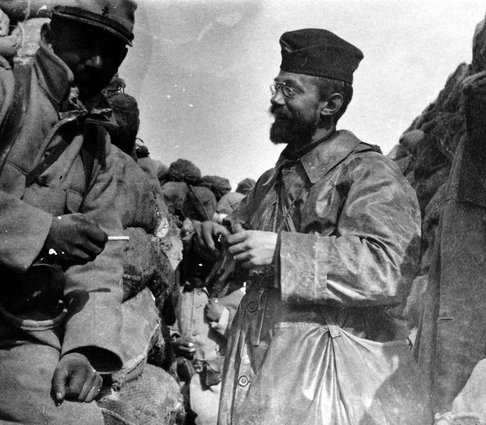 Estamos en los primeros meses de la contienda y la acometida alemana parece imparable: a finales de agosto, las tropas del Kaiser se han plantado a 60 kilómetros de París y el miedo a morir es cada vez más evidente en el ejército franco-británico, sobre todo por dejar sin amparo a la población, o sea, a las mujeres, hijos y padres de los soldados. Entre el temor y la desesperanza, los sacerdotes galos obligados a alistarse -las leyes anticlericales de Francia no hacen distingos entre varones a la hora de ir al frente- se multiplican para recordar a la tropa que los destinos del mundo no son ajenos a la Providencia de Dios, y comienzan a promover la devoción al Sagrado Corazón de Jesús, tan ligado a la historia del pueblo francés. Los capellanes militares, como el célebre jesuita Louis Lenoir (que morirá en 1917 por rescatar a un soldado herido), y los presbíteros obligados a combatir, reparten entre los soldados oraciones al Corazón de Cristo y pequeñas estampas del ¡Detente! No son amuletos, son instrumentos para grabar en el pecho la certeza de que la muerte no tiene la última palabra; que la misericordia de Dios abraza a quien entrega su vida por los demás; que el sacrificio merece la pena; que se puede confiar la vida de los seres queridos al cuidado infinito del Señor; y que el enemigo, aquel que ha jurado a Dios odio sin tregua y quiere perder el alma y el cuerpo de quienes se saben hijos del Padre, ese que seduce con tentaciones de éxito y dominio, retrocede ante un alma que se atrinchera en el Corazón traspasado por la lanza de Longinos.