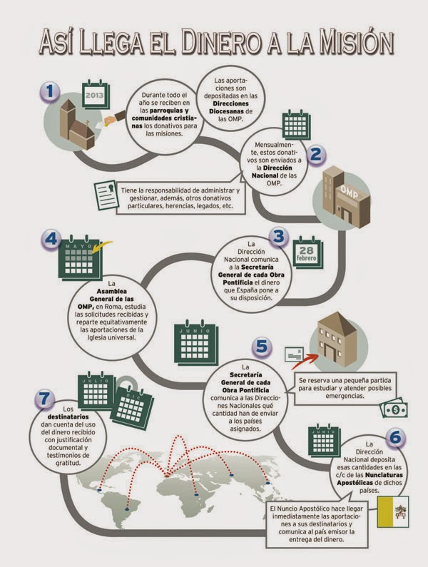 6 OMP España envía el dinero a los Territorios de Misión a través de las nunciaturas apostólicas, desde donde llega inmediatamente a sus destinatarios.