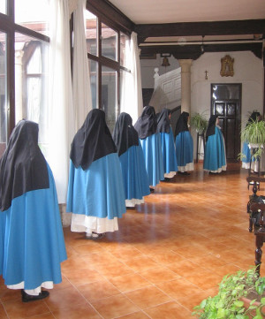 -Cada día se ordena entorno al Cuerpo de Cristo que está expuesto durante el día y la noche. Nuestros días tratan de asemejarse al ambiente de la Virgen María en Nazaret, entorno a Jesús, en relación con Él. A partir de aquí todo lo demás, la verdad es que dentro del relativo orden siempre hay alteraciones. Se marca como primordial en el horario el rezo de la Liturgia y la oración personal; el resto, es más variable según las circunstancias, aquí se incluyen el trabajo comunitario y los oficios propios de la casa que se reparten de forma rotativa; además del estudio, lectio, ensayos, visitas al locutorio, recreos, acontecimientos imprevistos como… responder a una entrevista para Iglesia en Córdoba…