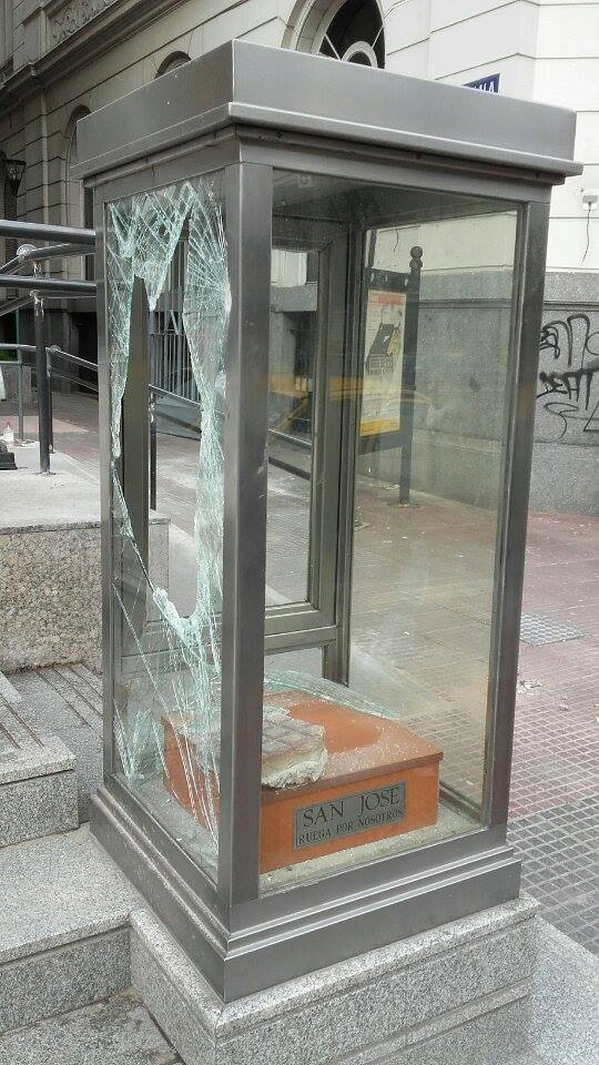(Parabuenosaires) Luego de destrozar la imagen, los vándalos la dejaron en la acera de la misma calle.