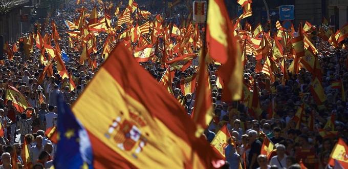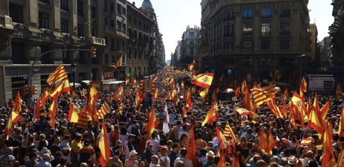 La mayor protesta celebrada en Barcelona a favor de la unidad de España y contra la secesión ha tenido lugar dos días antes del pleno de la Cámara catalana en el que se podría proclamar la secesión de Cataluña.