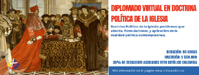 Por esta razón, en Voto Católico Colombia hemos querido organizar un Diplomado Virtual en Doctrina Política de la Iglesia. El objetivo de este diplomado es ofrecer a los participantes un recorrido por la construcción de la Doctrina Política de la Iglesia, los problemas que aborda, sus principales formulaciones, y su aplicación en la realidad política contemporánea.