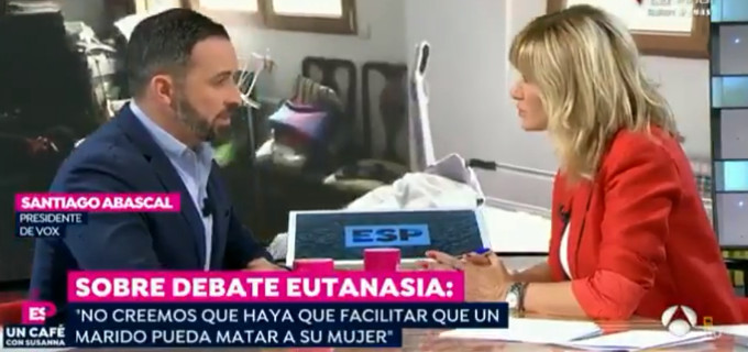 📺 @Santi_ABASCAL sobre la eutanasia: "Nosotros no estamos a favor de que sea posible acabar con la vida de cualquier ser humano. Eso daría lugar a que la vida de cualquier anciano queda al albur de sus familias. Nosotros queremos proteger al más débil".#CafeAbascal ☕ pic.twitter.com/2v2dyIeeXu