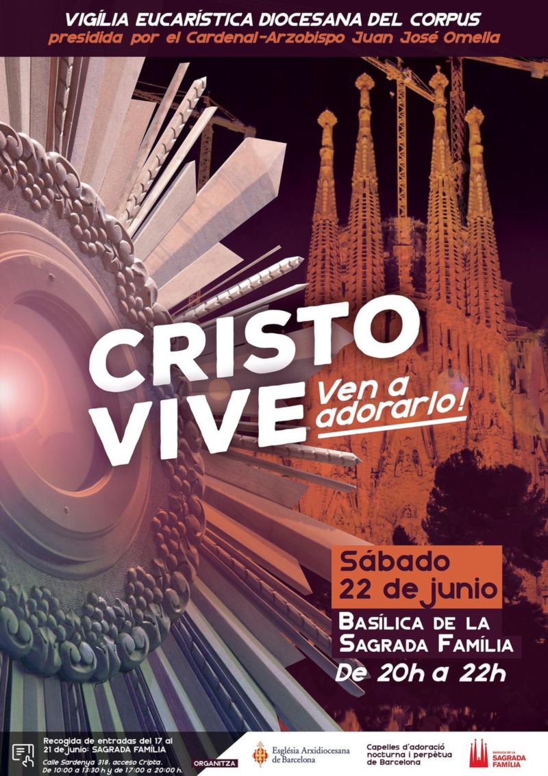 (Miguel Maristany) La basílica de la Sagrada Familia de Barcelona acogerá el próximo 22 de junio, de 20 a 22h, una vigilia diocesana de adoración eucarística con motivo de la fiesta del Corpus Christi, presidida por el arzobispo don Juan José Omella. Bajo el lema ‘Cristo vive. Ven a adorarlo’, el cardenal quiere reunir a las diversas iniciativas de adoración eucarística que han surgido en la ciudad condal en los últimos años.