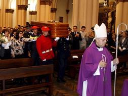 (Agencias/InfoCatolica) Los restos mortales de la última víctima de ETA han llegado a la iglesia entre aplausos de los cientos de personas congregadas en las calles adyacentes, a hombros de ocho agentes, dos de cada cuerpo policial: Policía Nacional, Guardia Civil, Ertzaintza y Policía Municipal de Bilbao, mientras sonaba la marcha fúnebre tocada por la banda del Cuerpo Nacional de Policía.