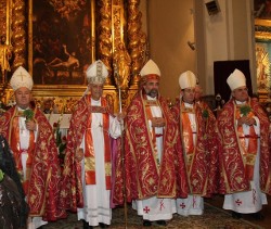 El obispo oscense, don Jesús Sanz Montes, dio la bienvenida a concelebrantes y asistentes al inicio de la Celebración e indicó en sus palabras que las colectas recogidas en la Basílica con motivo del año jubilar se han destinado a la obra oscense de los Hermanos Franciscanos de la Cruz Blanca.