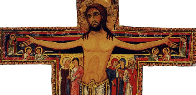Sea quien fuere el artista que pintó sobre madera este Crucifijo, estaba muy familiarizado con los Evangelios. En particular, estaba muy familiarizado con el Evangelio de San Juan. Se podría imaginar que la narración de la pasión y la resurrección de Juan se abría a su lado mientras pintaba cada detalle, desde el cuerpo gloriosamente transfigurado de Jesús hasta todos los que le rodeaban, tanto los santos como los ángeles. Por eso, cuando los peregrinos vienen a Asís y van a la Capilla del Crucifijo de la Basílica de Santa Clara, sería beneficioso que trajeran consigo una Biblia y leyeran en oración el relato de Juan sobre la muerte y resurrección de Jesús.