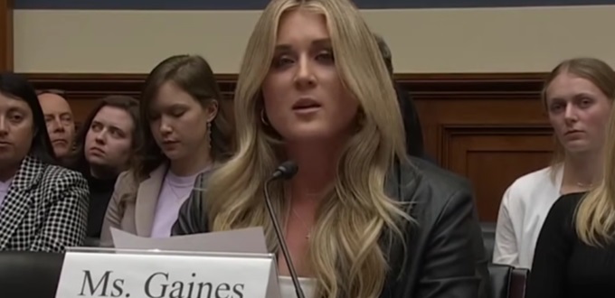 En un post en X, Gaines, ex nadadora de la Universidad de Kentucky, anunció la demanda.