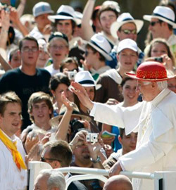 (Agencias/InfoCatólica) A su llegada desde Castel Gandolfo en helicóptero, el Papa, a bordo de un Jeep, recorrió los sectores ocupados por los jóvenes en la Plaza de San Pedro, para saludar a los jóvenes, que lucían el pañuelo blanco del evento al cuello y camisas de diferentes colores que identifican a los distintos grupos, así como banderas de la la asociación y de sus 17 países de procedencia.