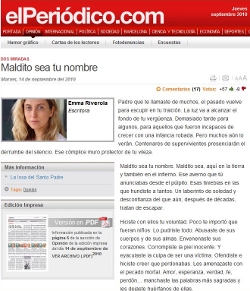 Más tarde, el artículo de opinión continúa diciendo: “maldito sea tu nombre, maldito sea, aquí en la tierra y también en el infierno” y en el siguiente párrafo afirma que “hiciste con ellos tu voluntad. Poco te importó que fueran niños. Lo pudriste todo. Abusaste de sus cuerpos y de sus almas. Abusaste de sus cuerpos y de sus almas. Envenenaste sus corazones. Corrompisteis la piel inocente. Y eyaculaste la culpa de ser una víctima”.
