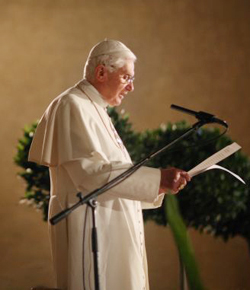 “Ustedes saben bien, queridos artistas, que la experiencia de lo bello, de lo auténticamente bello, no es efímera ni superficial, no es una cosa accesoria o secundaria en la búsqueda del sentido último y la felicidad, porque tal experiencia no aleja de la realidad, sino que al contrario, lleva a una relación estrecha con la vivencia cotidiana, para liberarla de la oscuridad y transfigurarla, para hacerla luminosa, bella”.