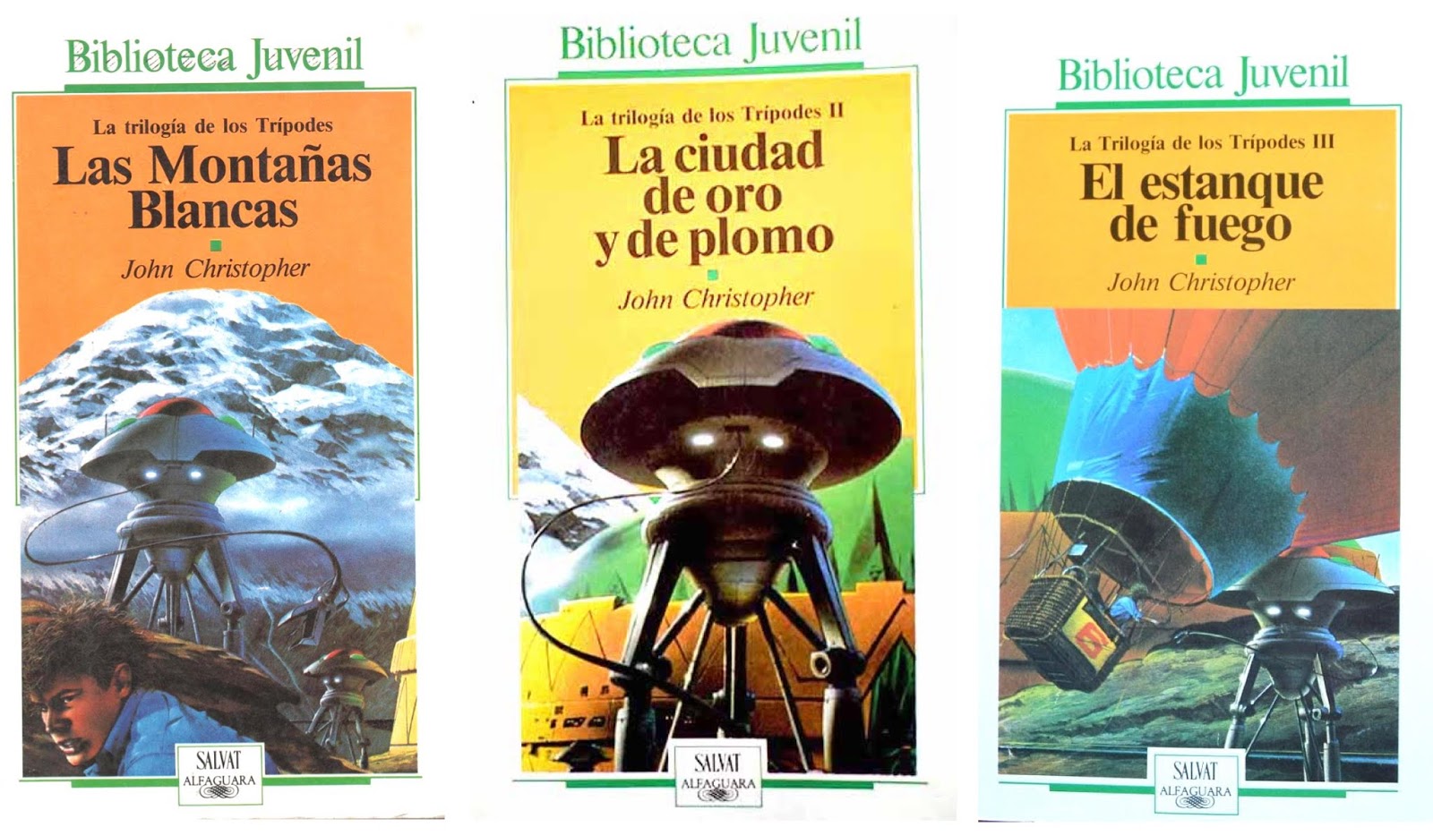 La trilogía de los Trípodes ––compuesta por Las Montañas Blancas (1967), La ciudad de oro y plomo (1968), y El estanque de fuego (1968)–– del inglés John Christopher es una obra claramente inspirada en La guerra de los mundos y en cierto modo continuadora de esta. Christopher imagina un final alternativo y más pesimista que el elegido por Wells: el triunfo de los extraterrestres sobre la raza humana y el sometimiento de esta a su tiránico dominio. Pero siempre resta la esperanza, como así cree el joven protagonista Will Parker, quien junto con otros resistentes harán frente a la dominación de los Trípodes desde sus escondites en las Montañas Blancas. Para 12 años en adelante.