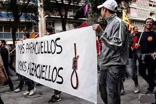 Lo comento porque efectivamente si tiramos de ley (que remedio) puede ser perfectamente apologia del terror. Pero, se entero la autoridad de la manifestacion? se entero de un lema tan agresivo y claramente terrorista? Si no se entero, no me extranaria, ya que segun se ve son cuatro gatos. Aun asi, sigue siendo claramente una defensa del terrror. Por lo que quien sea, que este cerca, debe denunciar un atropello.